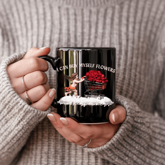 I Can Buy Myself Flowers (White) Black Glossy Mug