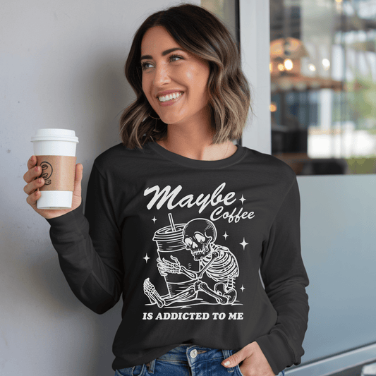 Maybe Coffee Is Addicted To Me (White) Comfort Colors Long-Sleeve Shirt